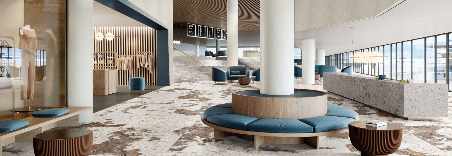 灵感来源于阿尔卑斯冰川,纯粹的色调, 纵横交错的细纹犹如被冰雪覆盖的冰川脉络纹理细腻而气势磅礴, 赋予空间无限自然与纯净的气息 。